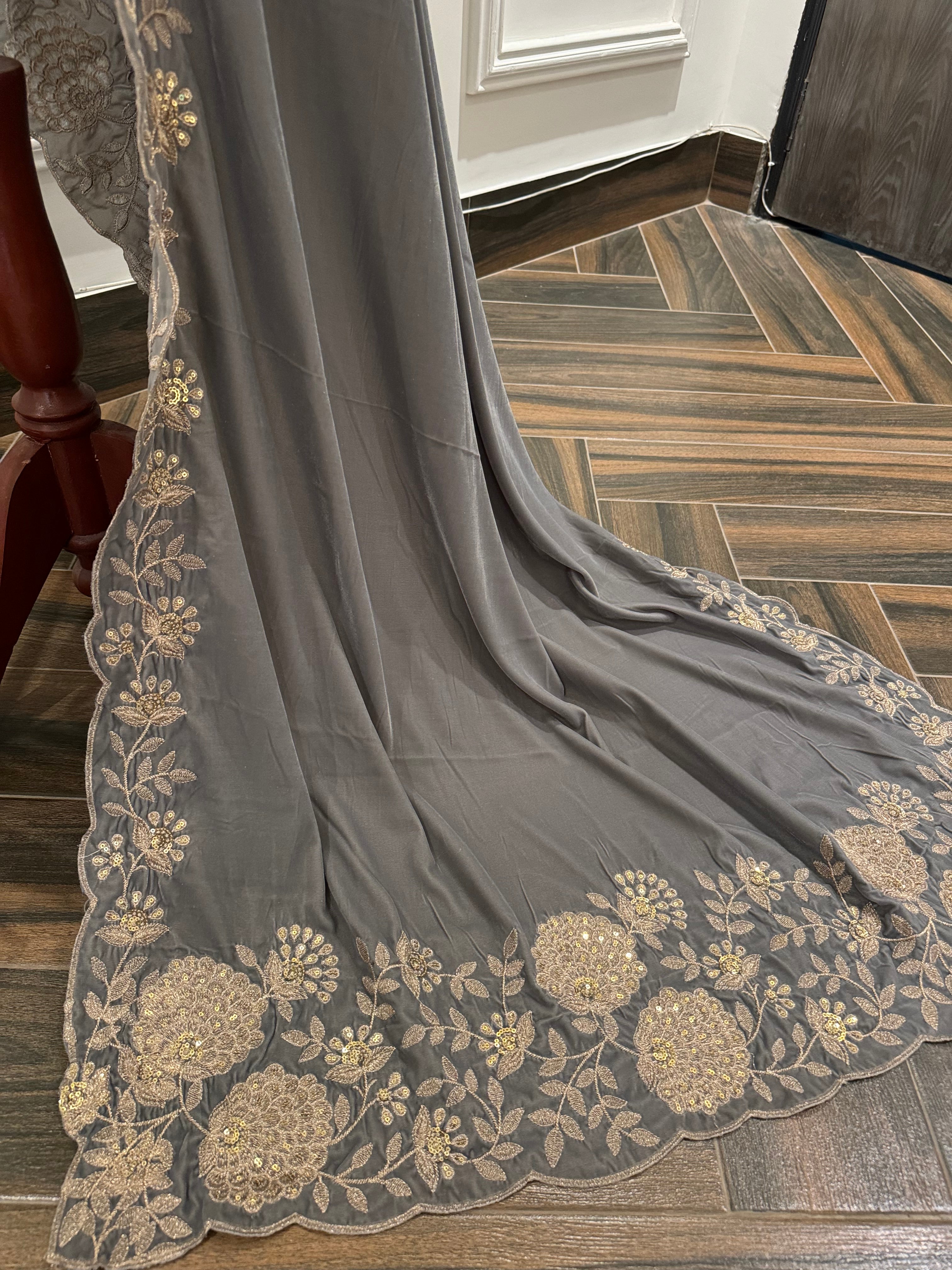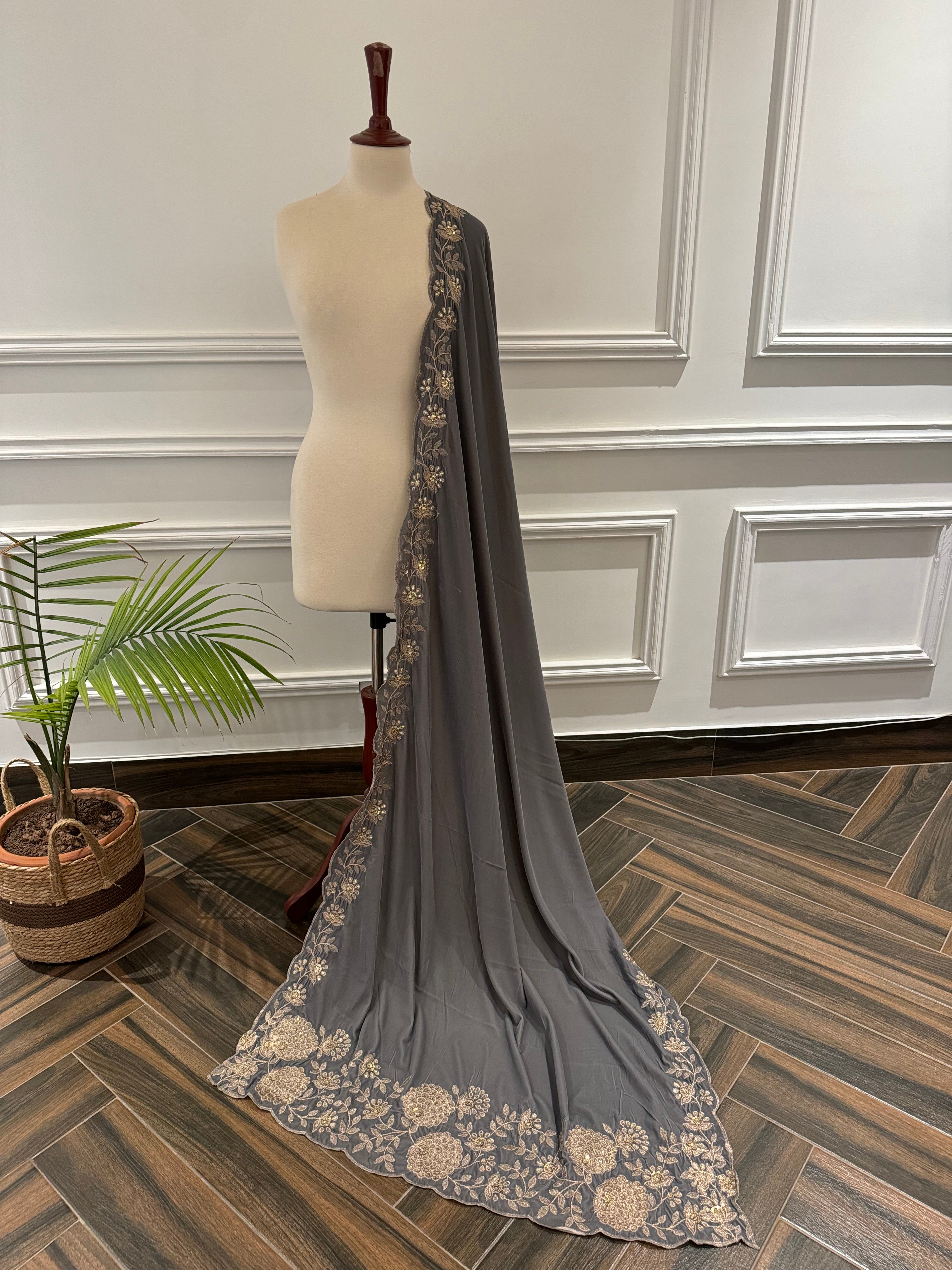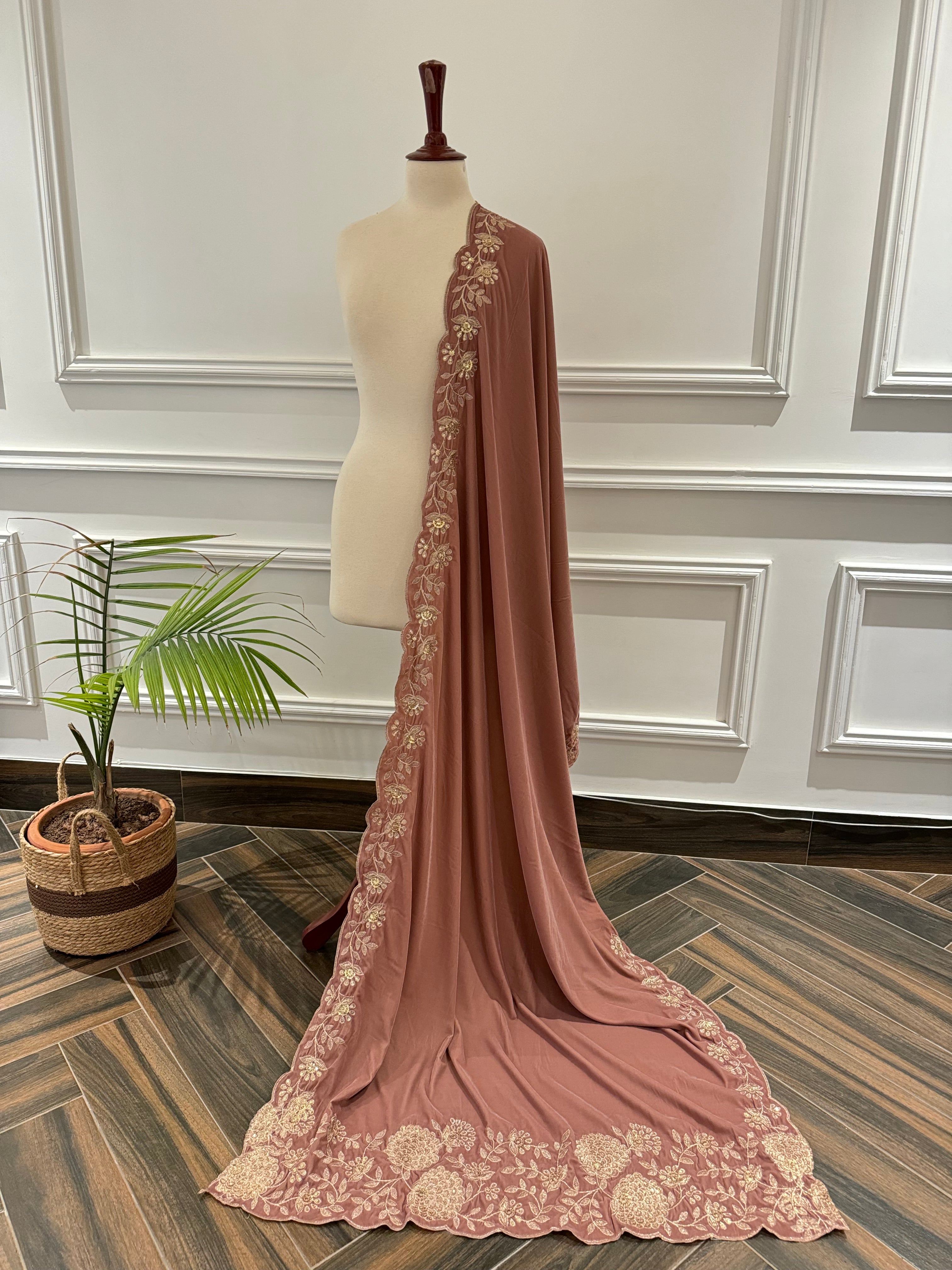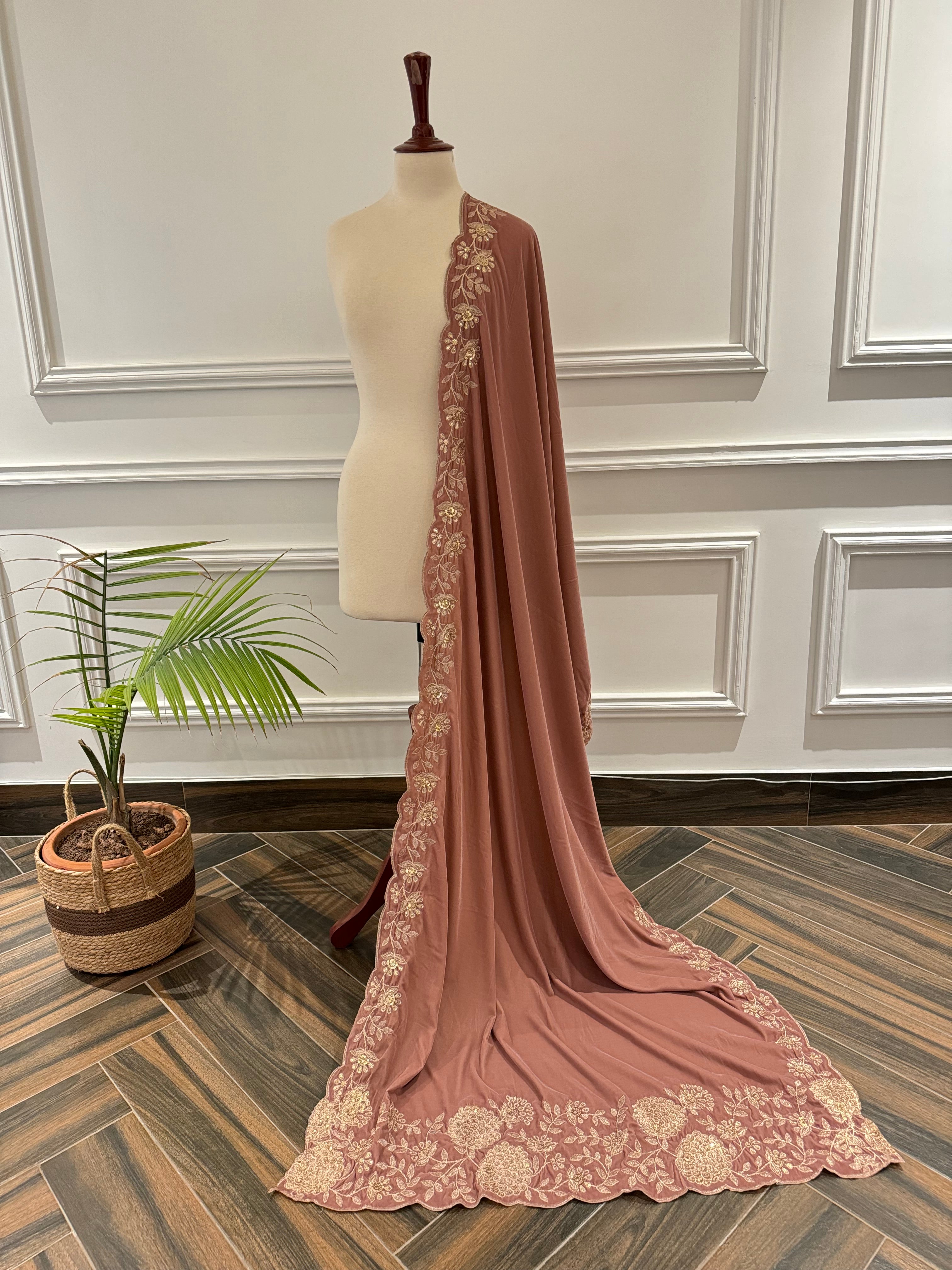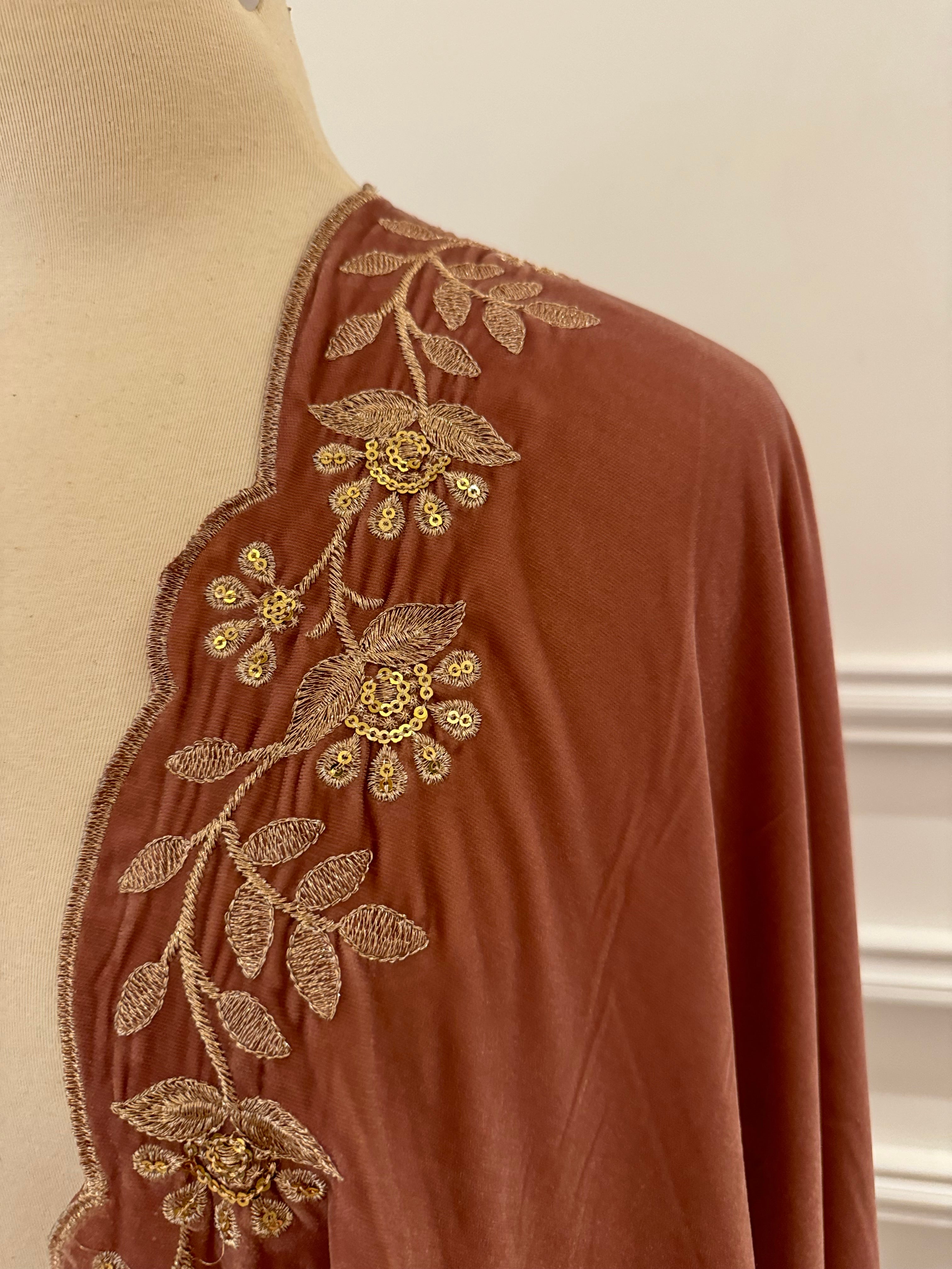 Wrap yourself in elegance with our exquisite pastel velvet shawl, designed to elevate any ensemble. This luxurious piece features intricate floral tila and sequined cutwork embroidery along the sides, adding a touch of sparkle and sophistication. The heavy floral bunches adorning the palu create a stunning focal point, making it perfect for both casual outings and special occasions. Soft to the touch and rich in color, this shawl not only provides warmth but also transforms your look with its artistic craftsmanship.