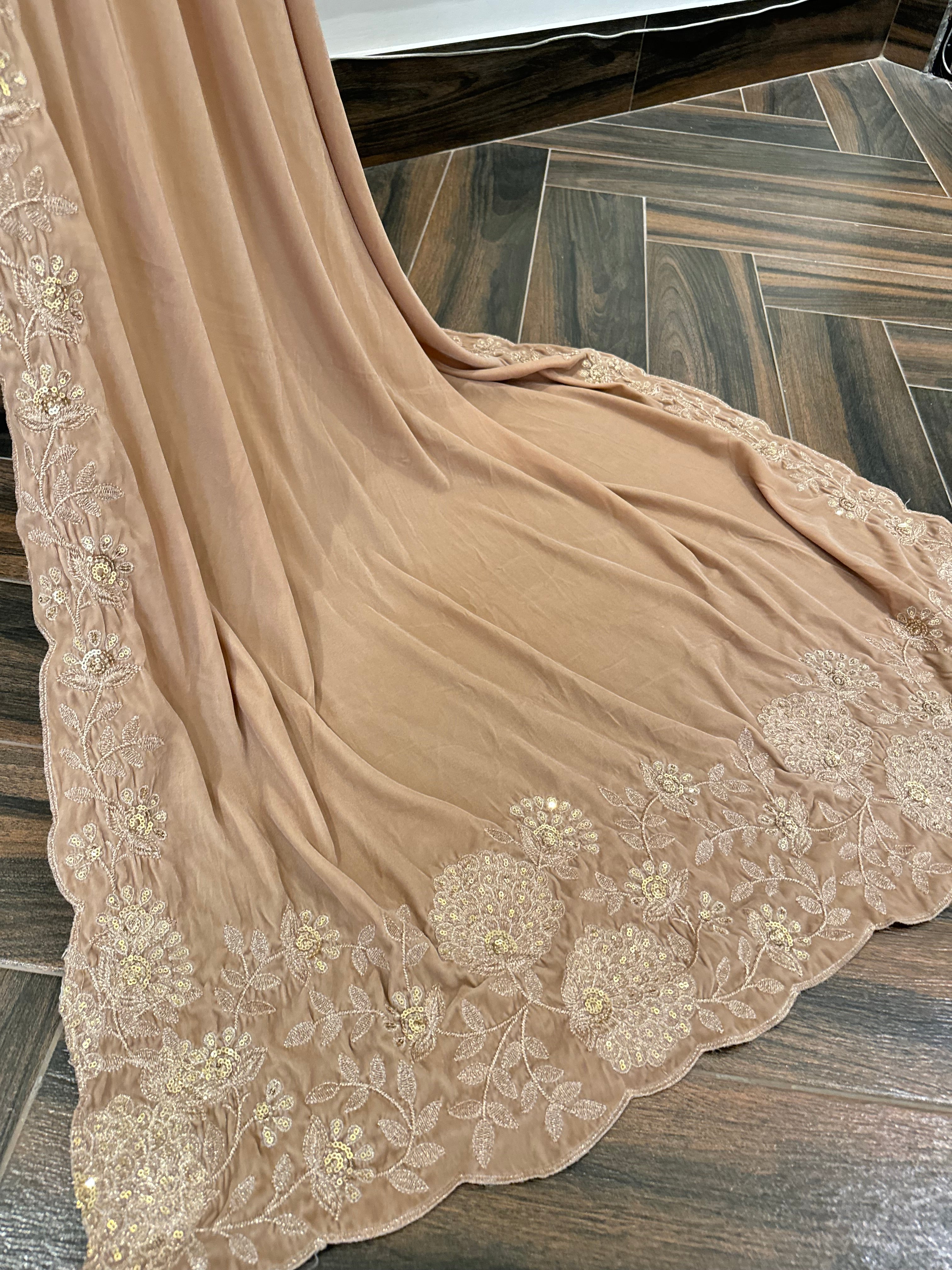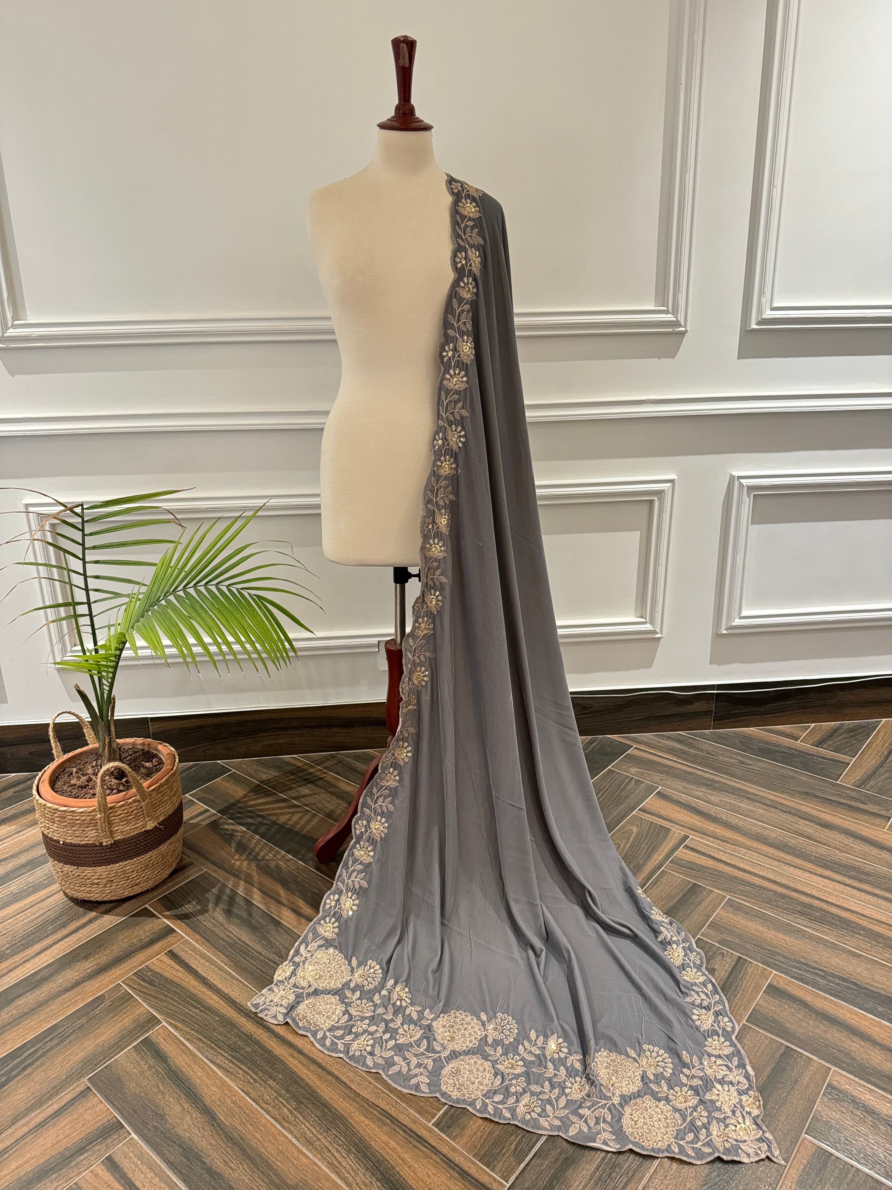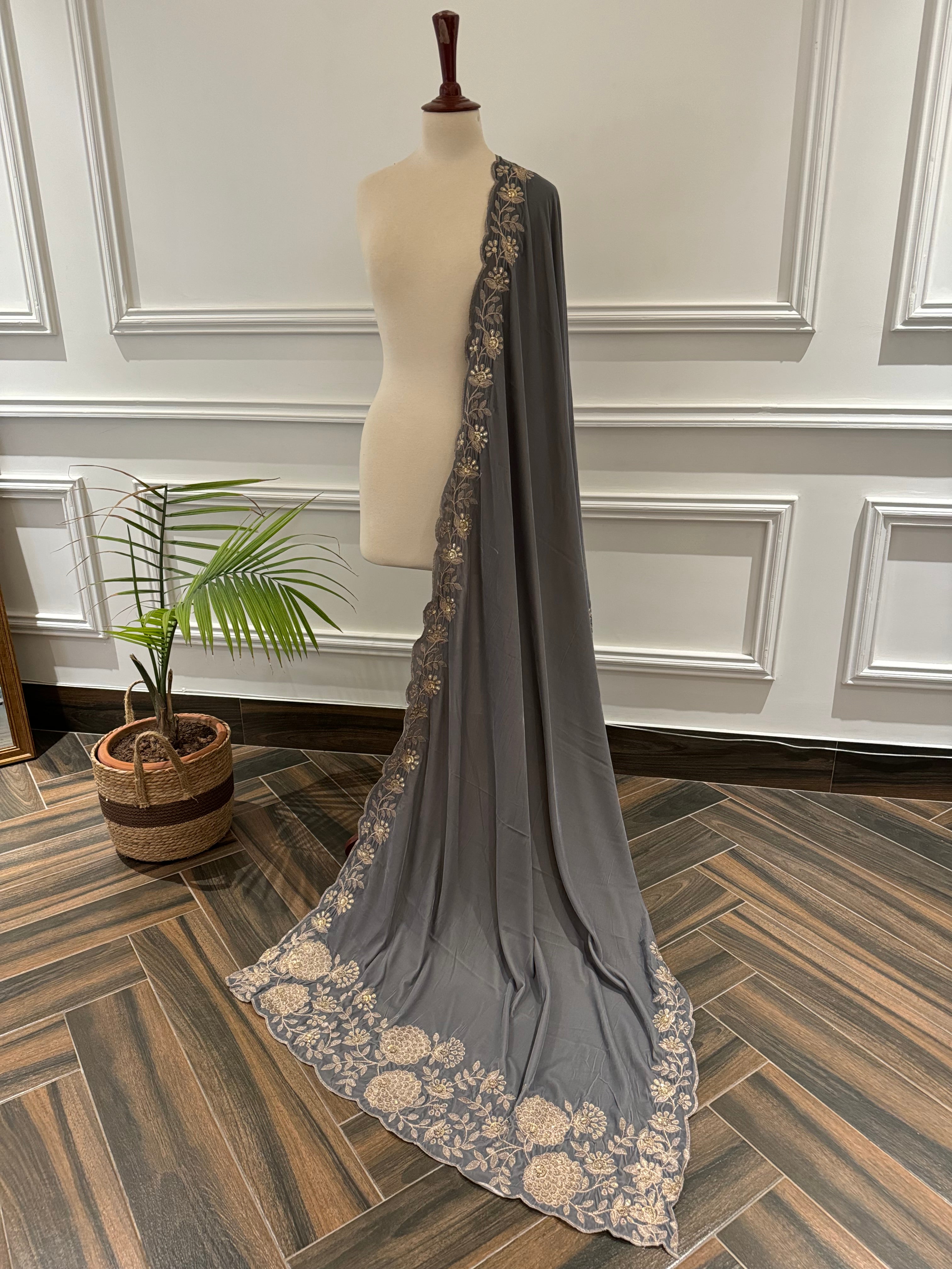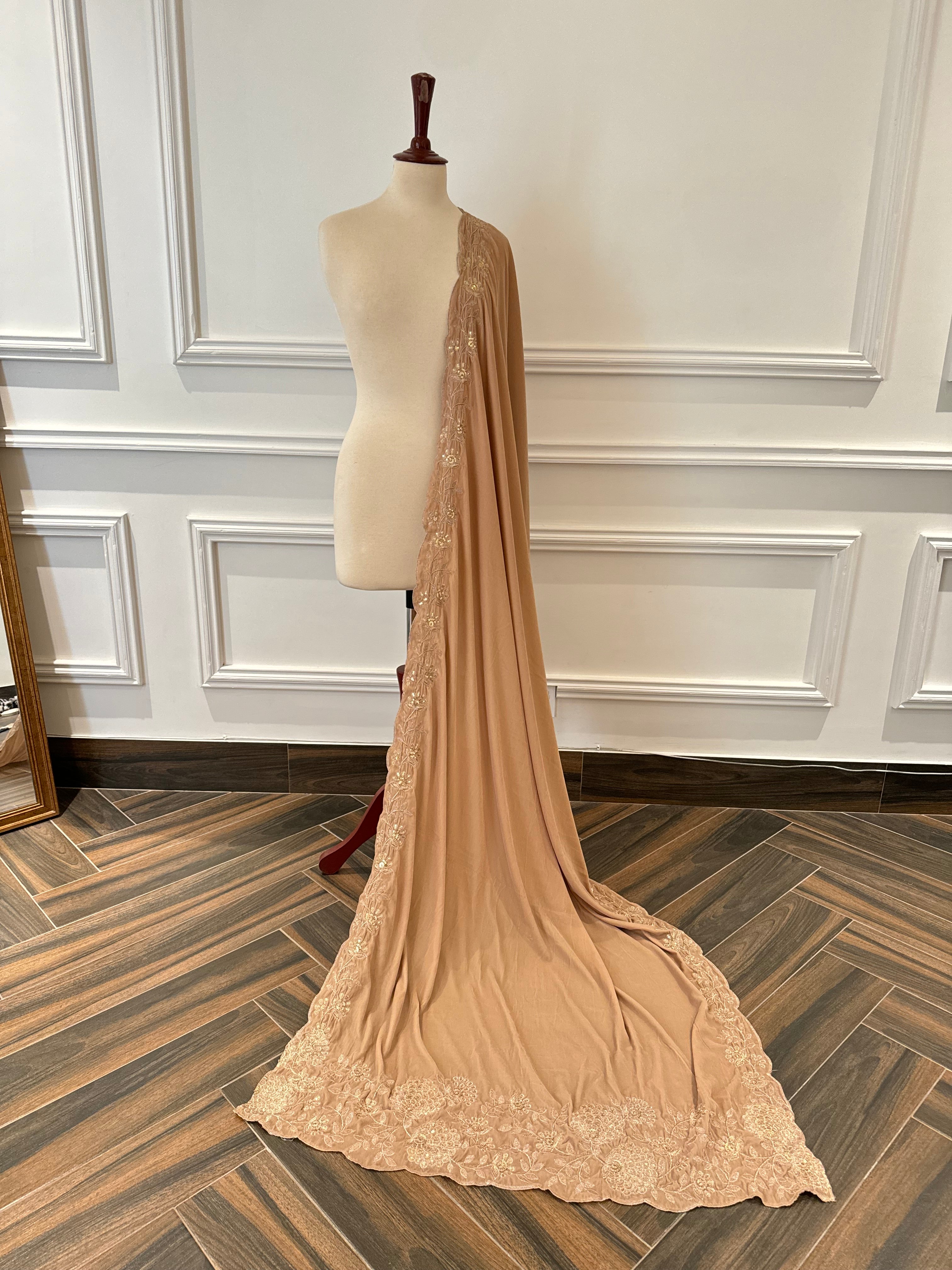 Wrap yourself in elegance with our exquisite pastel velvet shawl, designed to elevate any ensemble. This luxurious piece features intricate floral tila and sequined cutwork embroidery along the sides, adding a touch of sparkle and sophistication. The heavy floral bunches adorning the palu create a stunning focal point, making it perfect for both casual outings and special occasions. Soft to the touch and rich in color, this shawl not only provides warmth but also transforms your look with its artistic craftsmanship.